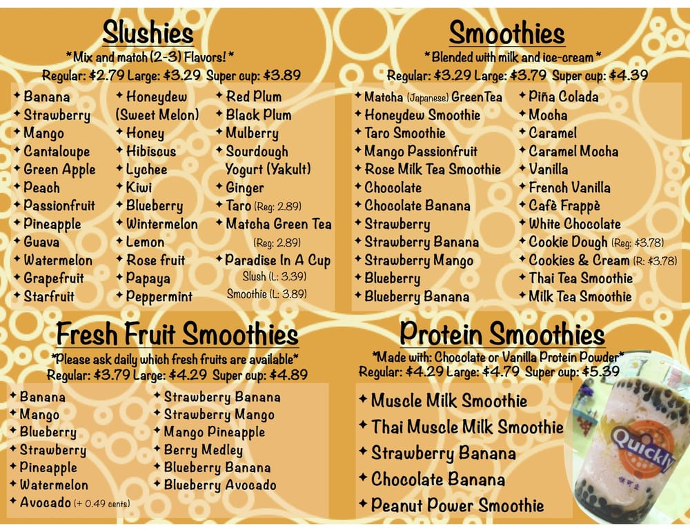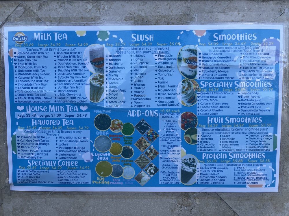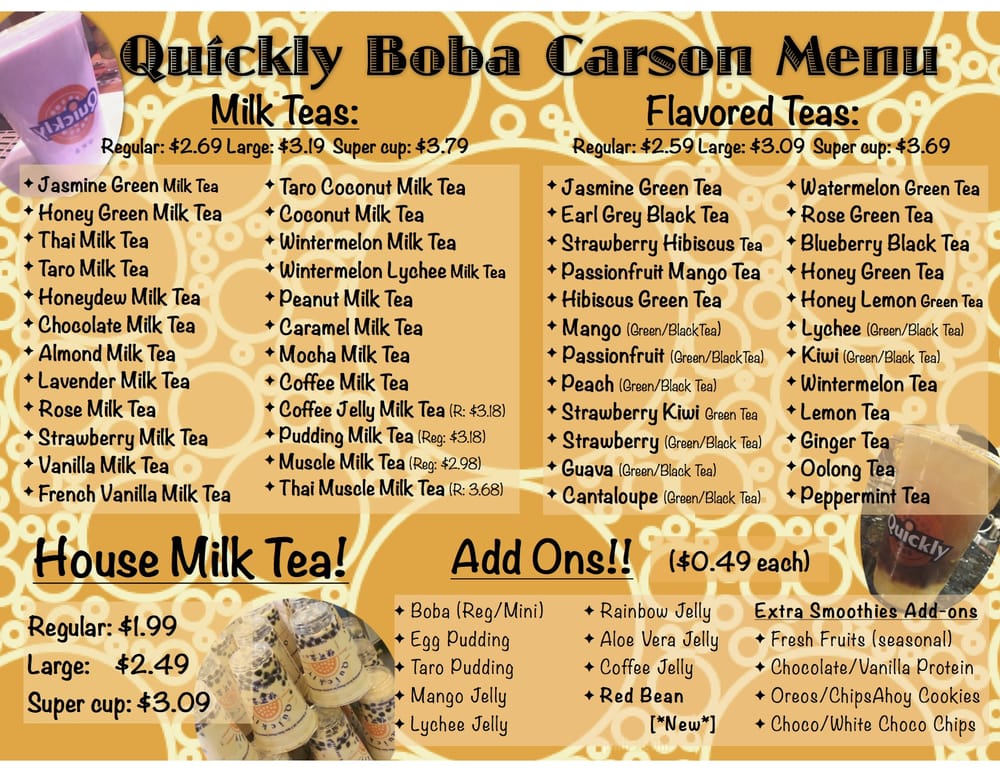 Quickly Boba is a vibrant juice bar and bubble tea spot located in Carson, CA. Offering a variety of drink options like rose milk tea, Thai tea, and chocolate protein smoothies, Quickly Boba is a go-to spot for refreshing beverages. Customers rave about the chewy and fresh boba, along with tasty snacks like popcorn chicken and bubble waffles. With a cozy outdoor seating area and friendly staff providing quick service, Quickly Boba is a perfect place to grab a quick and satisfying treat. While some find the drinks to be on the sweeter side, options for adjusting sweetness levels are available. Overall, Quickly Boba offers a nostalgic experience with a modern twist, drawing in customers from near and far for their delicious drinks and snacks.